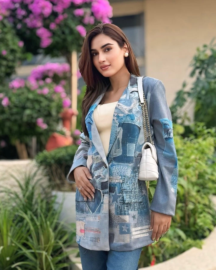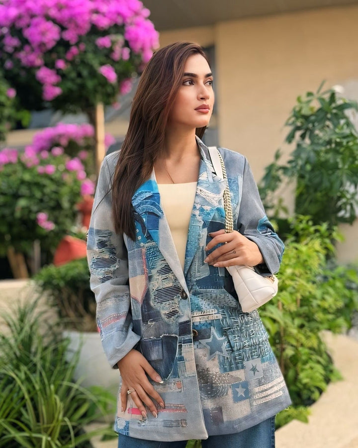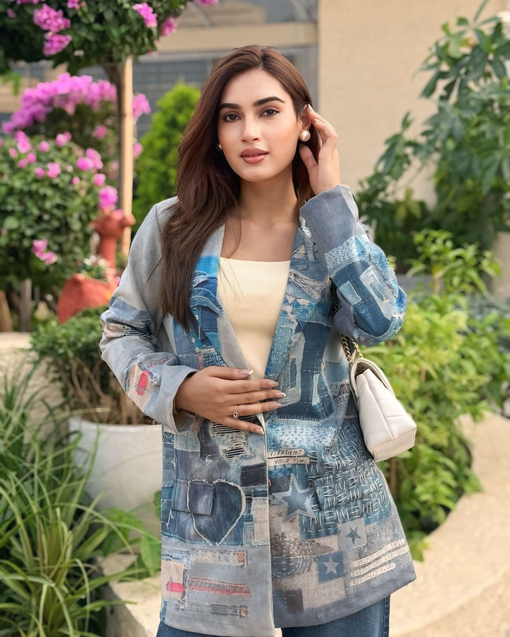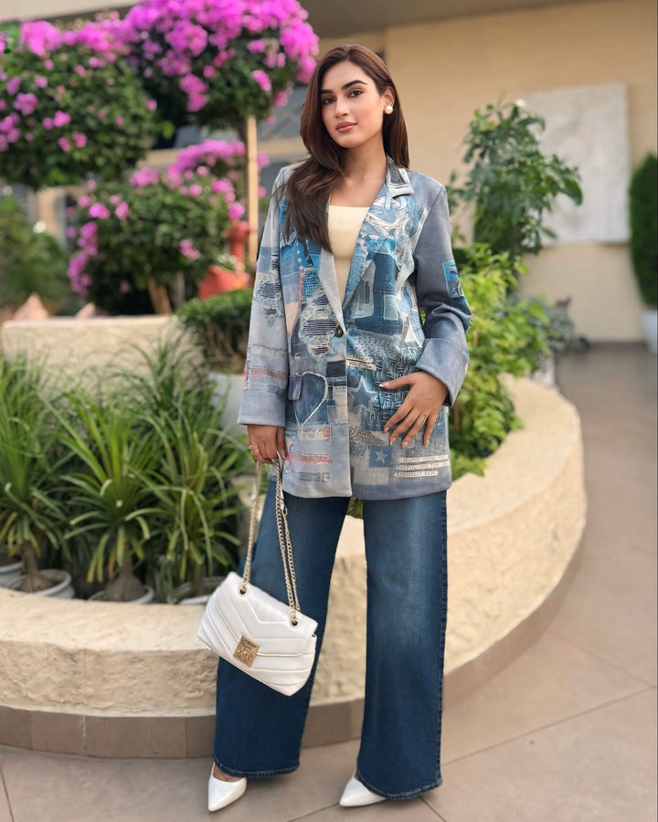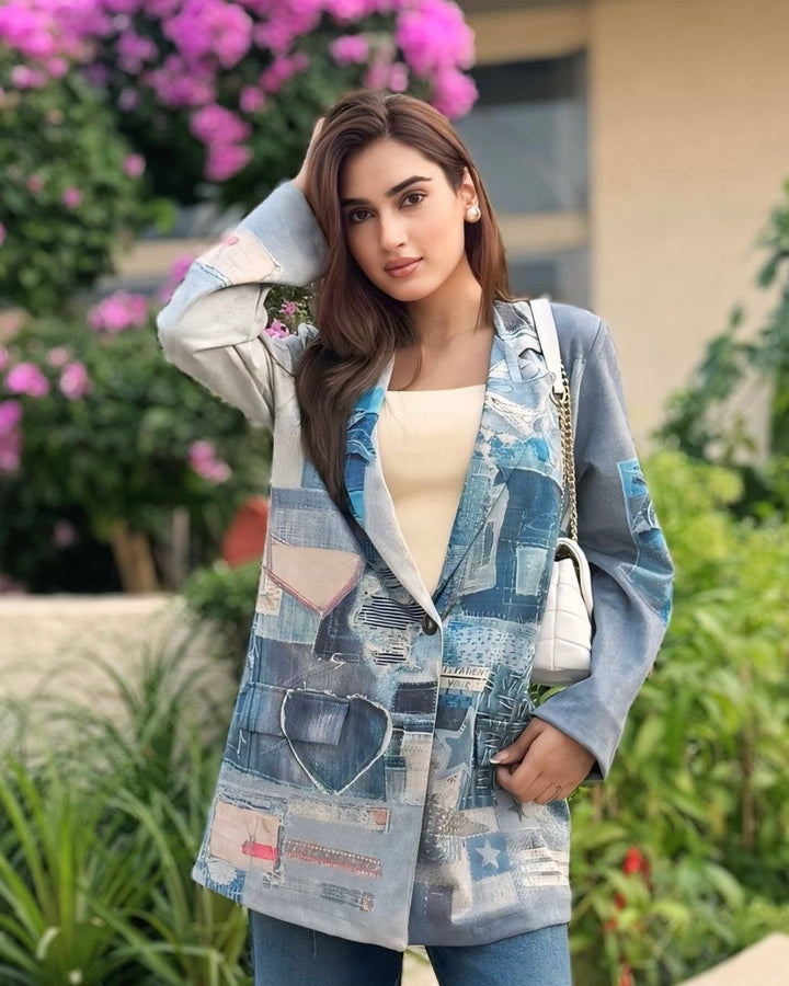 The trousers, inner top, handbag, and accessories displayed are for styling purposes only and are not part of the purchase.