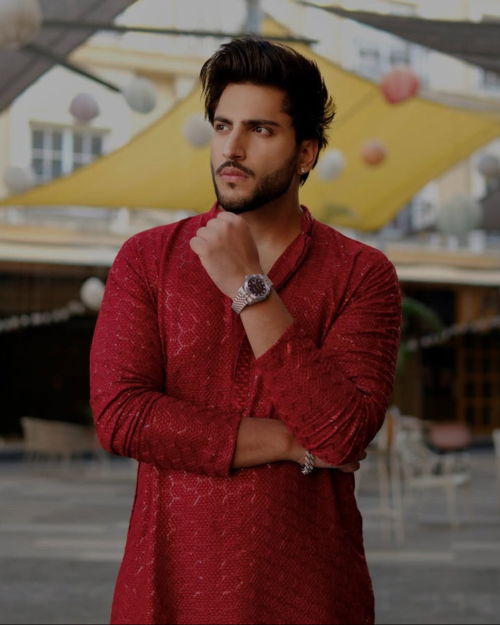 Festive Maroon Luxe Kurta for Men