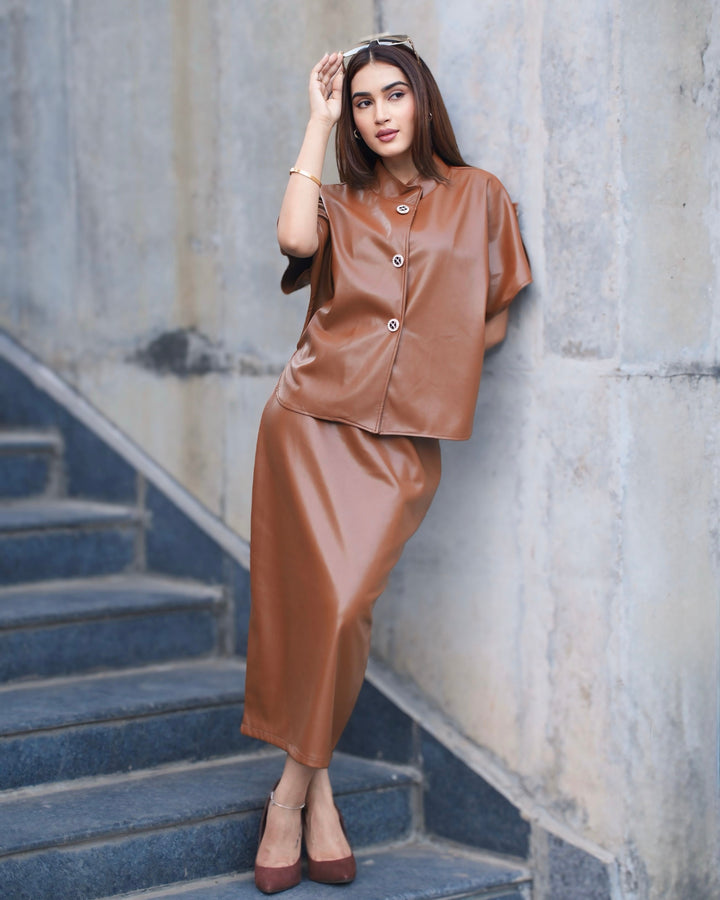 Timeless High Rise Faux Leather Midi Skirt